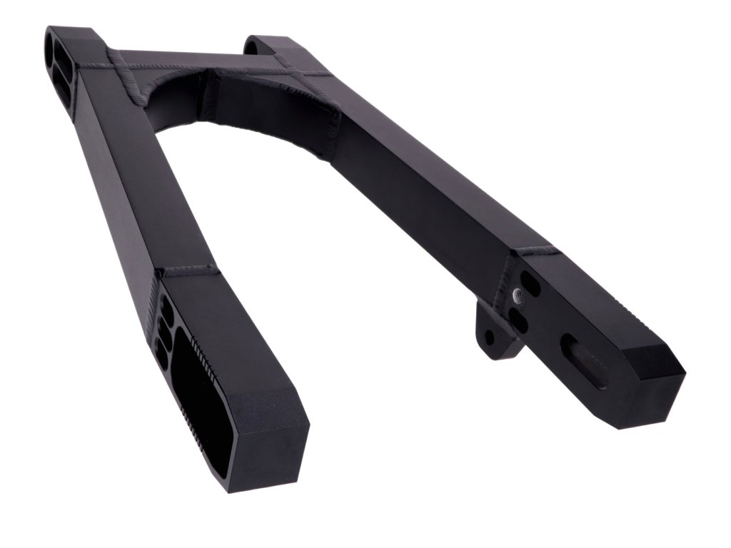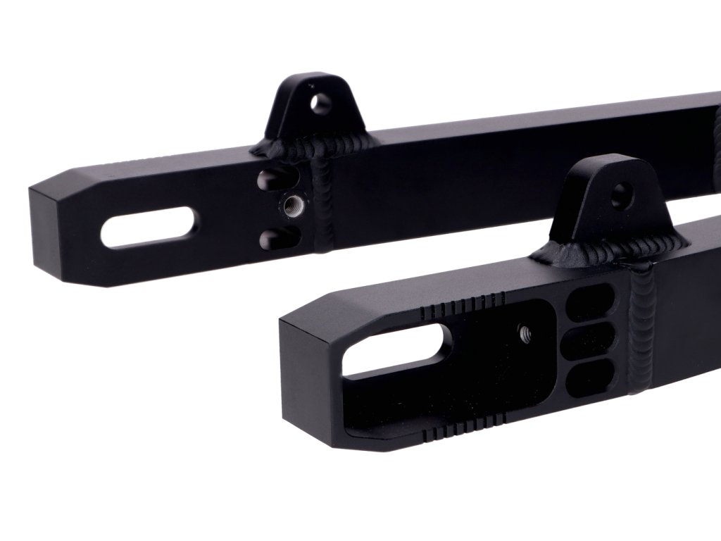 CNC frézovaná kastenschwinge, eloxovaná matně černá, z kvalitního hliníku, vhodná pro Simson S50, S51, S51 řadičky, S70, S70 řadičky, S53, S83.