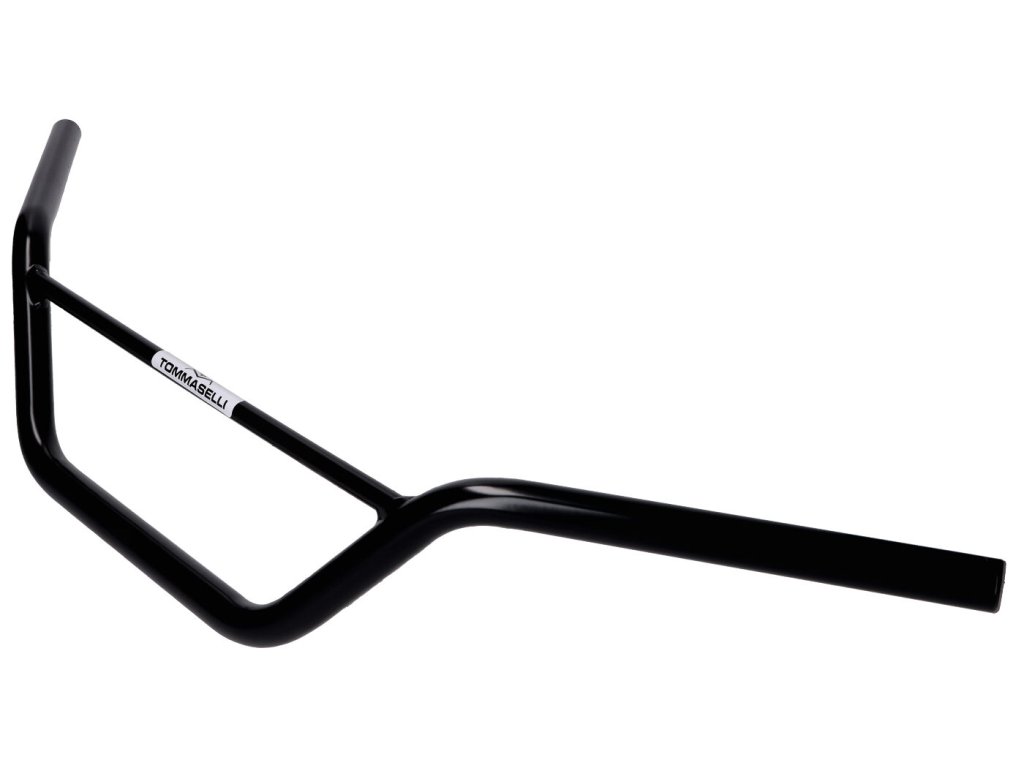 Černě lakovaná Tommaselli motokrosová / enduro řídítka z oceli o průměru 22 mm.