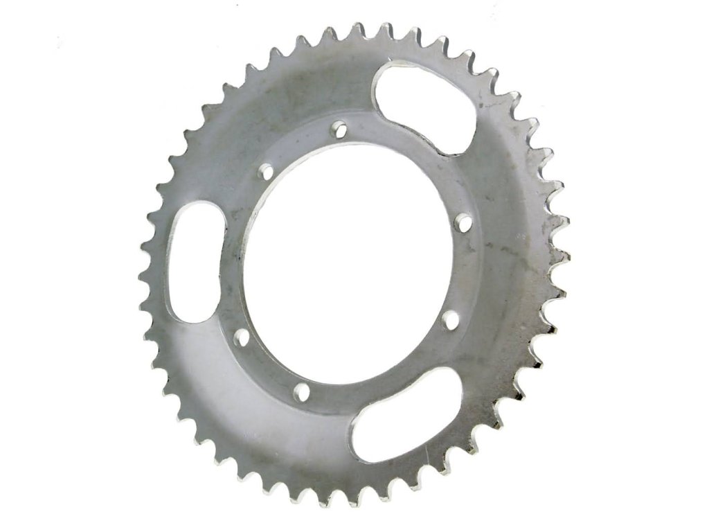 Náhradní rozeta se 45 zuby je vhodná pro mopedy Puch Maxi, X30 s nábojem Leleu. Rozměry: vnitřní průměr: 94mm, průměr ke šroubům: 105,5mm, průměr děr: 6,7mm, rozteč děr: 36,5mm, odsazení: 8mm. OEM číslo: 349.1.41.045.1.Doplňkové parametry
