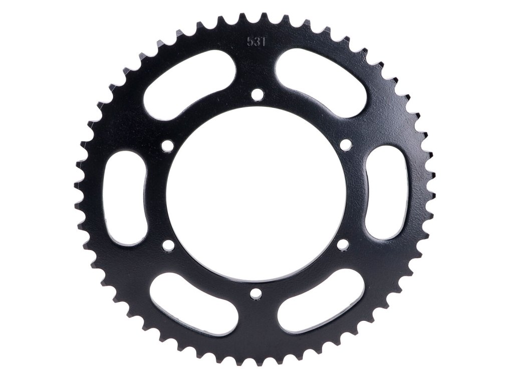 Náhradní rozeta (typ 420) s 53 zuby je vhodná pro stroje Aprilia, Derbi, Gilera (Aprilia SX 50, Derbi GPR 50 a Senda). Rozměry: vnitřní průměr: 108mm, průměr ke šroubům: 122mm, průměr děr: 6,5mm.Doplňkové parametry