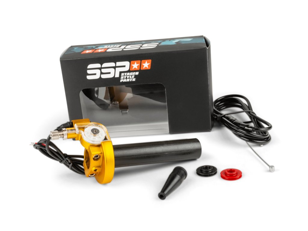 CNC rychlopal Stage6 je třikrát nastavitelný rychlopal s vysoce kvalitně eloxovanou armaturou. Součástí balení je lankový plyn. Integrovaný vypínač motoru umožňuje okamžité vypnutí přímo na plynové rukojeti. Stage6 SSP gripy jsou k dispozici v mnoha barvách, v nabídce jsou také odpovídající Stage6 SSP přepínače na řídítka a nové gumové rukojeti pro harmonický celek.