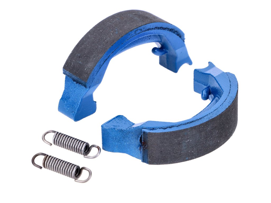 Sada brzdových paken Polini Sport 80x18 mm včetně pružin pro bubnovou brzdu, v modré barvě, pro Honda Camino, Peugeot 103, 104, Puch Maxi (drátěné kolo), MV50X, X30, X50