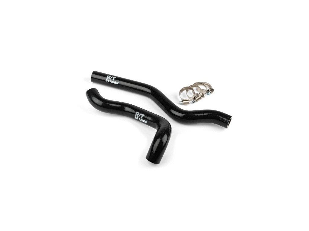 Tvarované silikonové motocyklové chladicí hadice. Sada obsahuje dva tvarované díly, které se montují na víko vodní pumpy. Součástí jsou také odpovídající sponky na hadice pro snadnou a rychlou instalaci. Skvělý vzhled nových silikonových hadic s novými sponami lépe vynikne, než když jsou použity staré, zrezivělé spony.