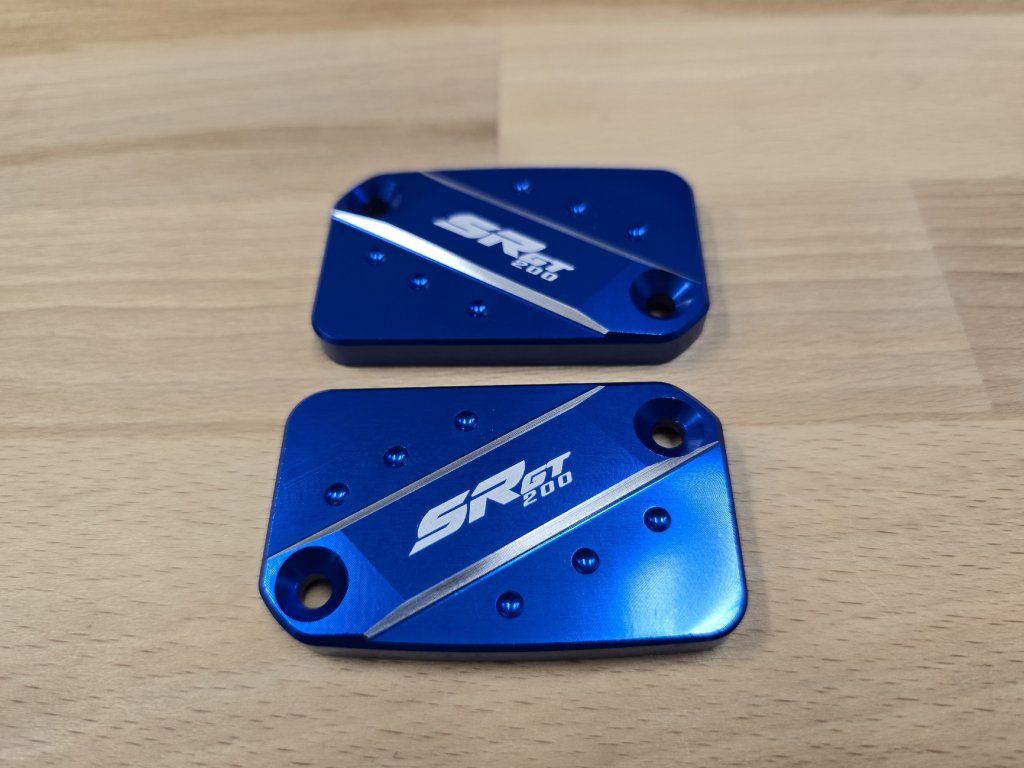 Stylové CNC krytky brzdové pumpy, v modré barvě, jsou vhodné na skútry Aprilia SR GT 125 / 200 ccm. Skvělý doplněk pro Váš skútr.