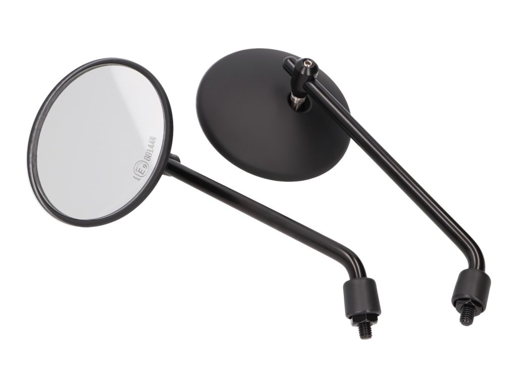 Univerzální sada kulatých zrcátek v černé barvě o délce 220mm. Zrcátka mají pravý a levý závit M8. Zrcátko jde výškově nastavit podle potřeb.Doplňkové parametry