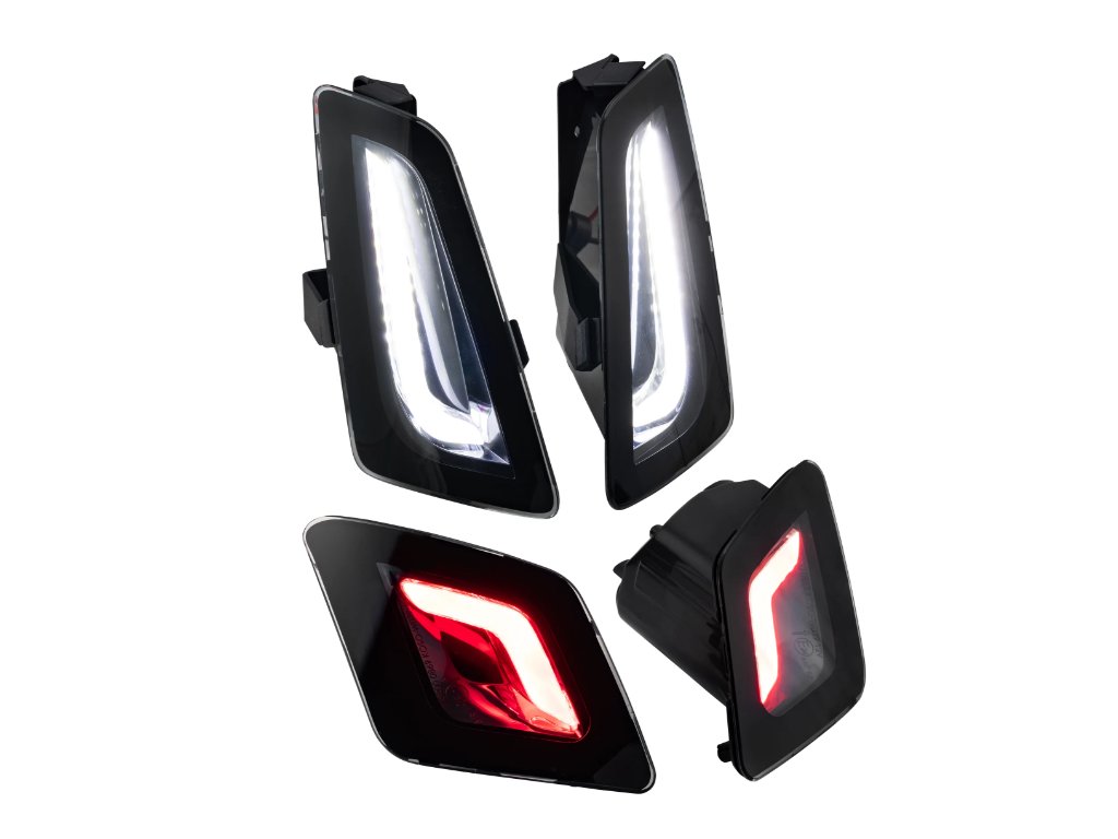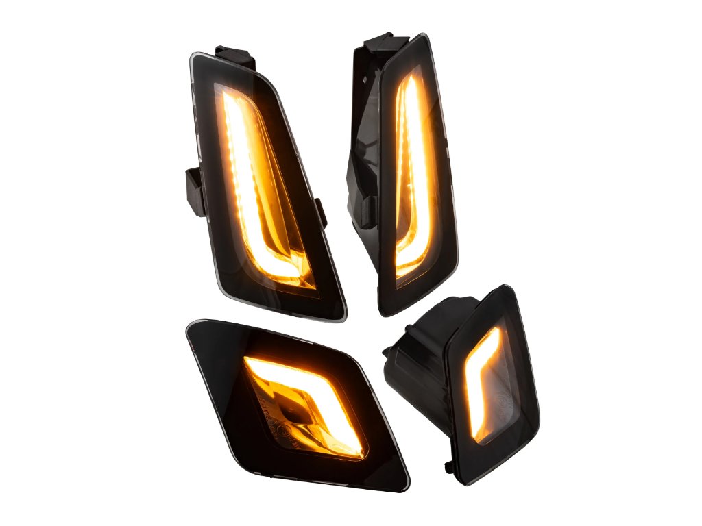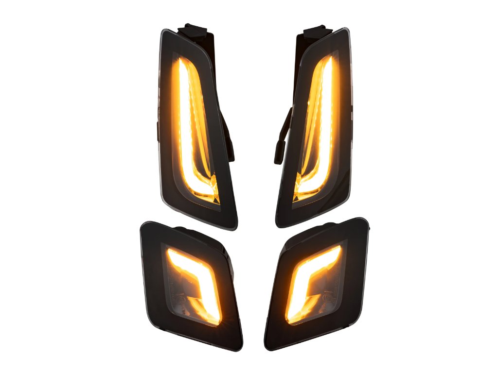Stylingová sada LED čirých blinkrů, vhodná na skútry Vespa GTV a GTS 125-300ccm od roku 2023. Sada se skládá z předních a zadních blinkrů. Tato sada blinkrů je skvělým doplňkem pro Vaší Vespu a pozvedne vzhled na další úroveň. Blinkry jsou homologované.