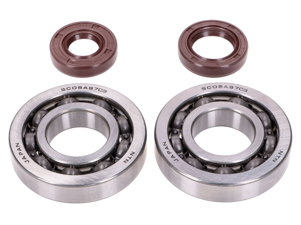 Kvalitní sada ložisek a gufer klikového hřídele Naraku, je vhodná na motory Minarelli a China 2T (1E40QMB, IE40QMB). Jedná se o kvalitní ložiska NTN a gufera FKM.