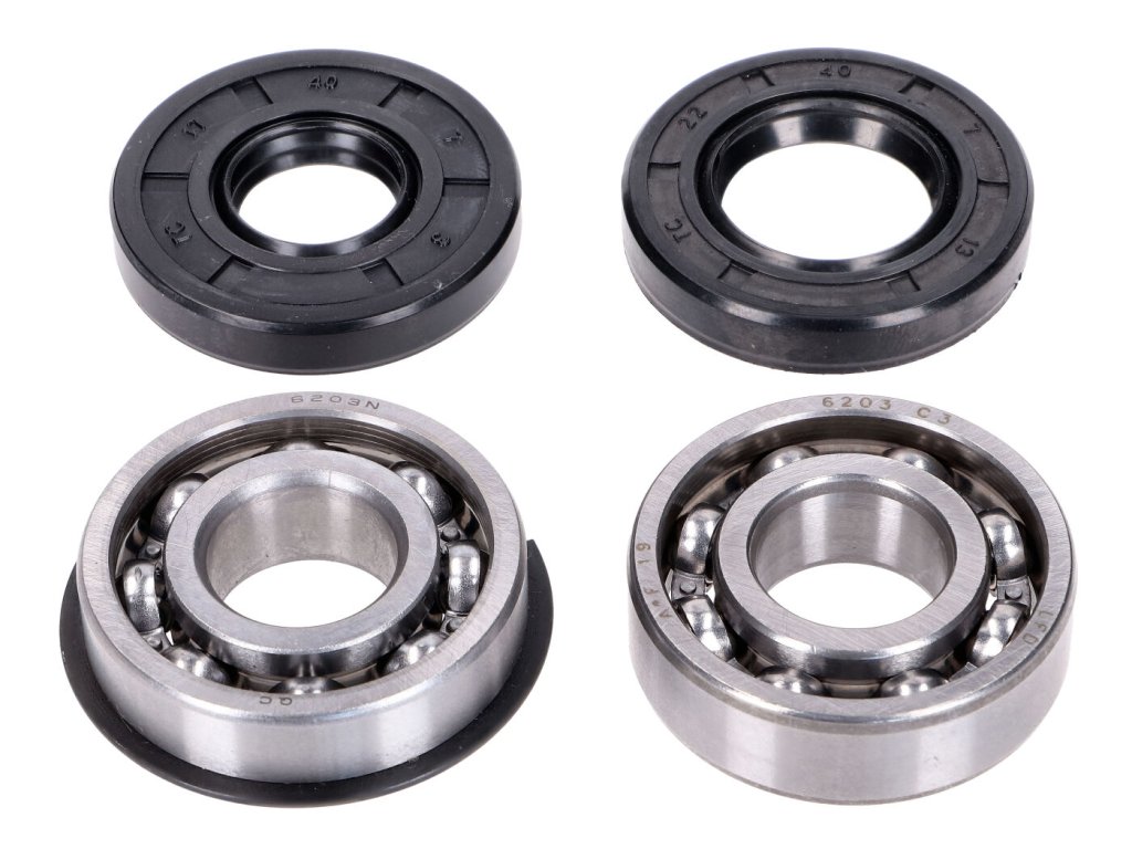 Náhradní sada ložisek a gufer klikového hřídele, je vhodná pro mopedy Puch Maxi S / N s 1-rychlostí (E50 - otáčení po směru hodinových ručiček). Sada obsahuje: 1x gufero 22x40x7mm, 1x gufero 17x40x7mm, 1x ložisko 6203N C3, 1x ložisko 6203 C3.Doplňkové parametry