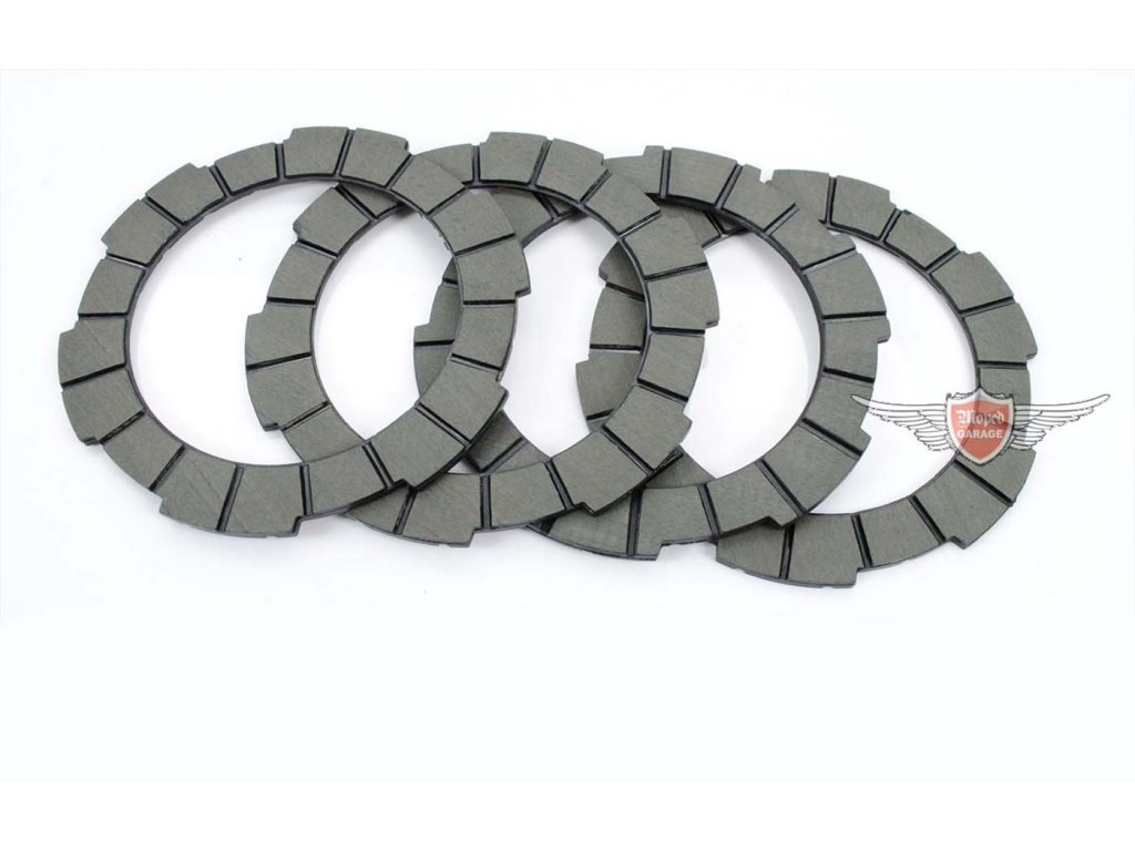 Sada třecích lamel spojky, složená ze 4 lamel, vyrobené z plastu pro nízké opotřebení a dlouhou životnost. Vhodné pro různé modely Kreidler jako Florett RMC, RM, LF, LH, Flory a další. Vhodné pro 3- a 4-rychlostní motory se 4 třecími lamelami.