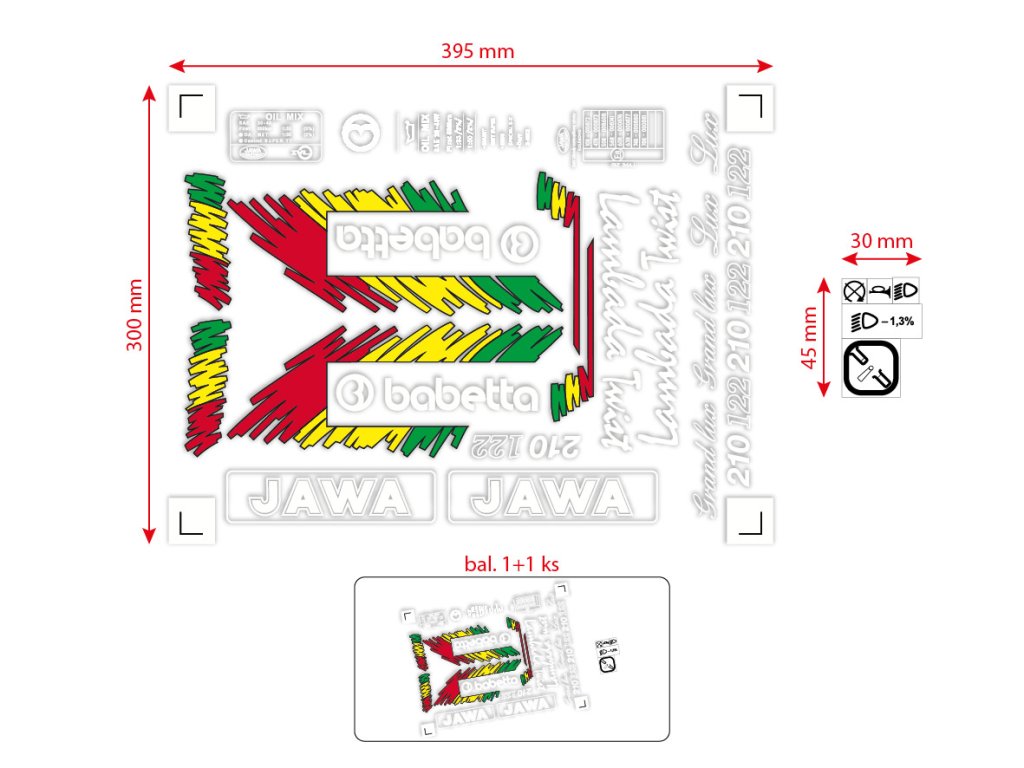 Sada samolepek Babetta 210 Lux – retro barevná edice (bílá, červená, žlutá, zelená)