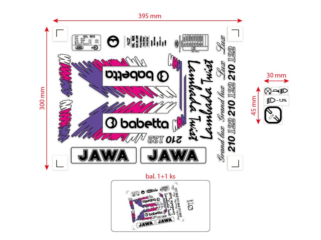 Sada samolepek Babetta 210 Lux – retro barevná edice (černá, fialová, růžová, bílá)