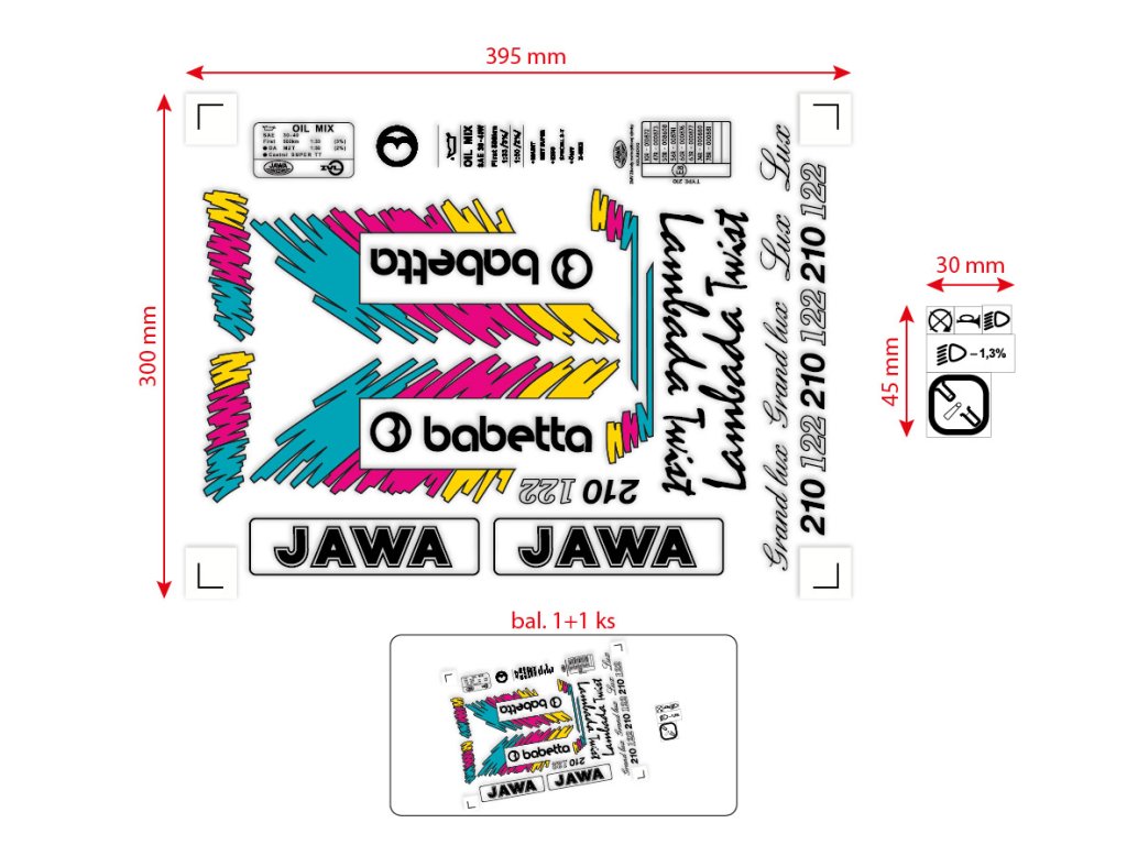 Sada samolepek Babetta 210 Lux – retro barevná edice (černá, tyrkysová, růžová, žlutá)