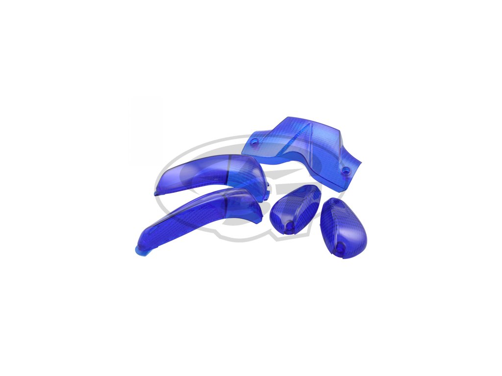 Sada skel blinkrů a zadního světla STR8, Runner od 2003, modrá - Barevné sklíčka blinkrů a zadního světla od STR8 jako velmi pěkný doplňek nebo náhrada. Dopřejte svému skútru módní facelift za pár korun.Doplňkové parametry