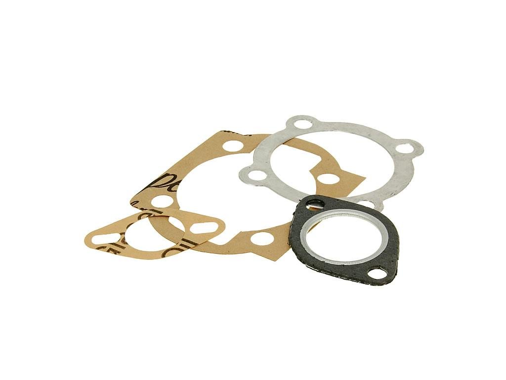 Tří dílná sada těsnění válce vhodná pro Mobylette obsahuje těsnění hlavy, těsnění pod válec a těsnění výfukového kolena.