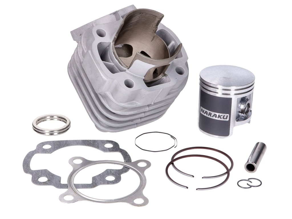 Sportovní hliníkový válec NARAKU 70ccm s vrtáním 47mm, je vhodný pro motory Minarelli horizontal AC. Válec od firmy Naraku je jedna z nejlevnějších variant. V sadě je obsažen válec, píst, pístní čep, pojistné kroužky a potřebné těsnění. Píst je speciálně potažený proti zadření při záběhu motoru. S tímto válcem je nutné přetryskovat karburátor, nebo použít větší sportovní karburátor pro plné využití výkonu. Lze použít originální hlavu válce, ale doporučujeme hlavu přímo pro 70 ccm válec.Doplňkové parametry