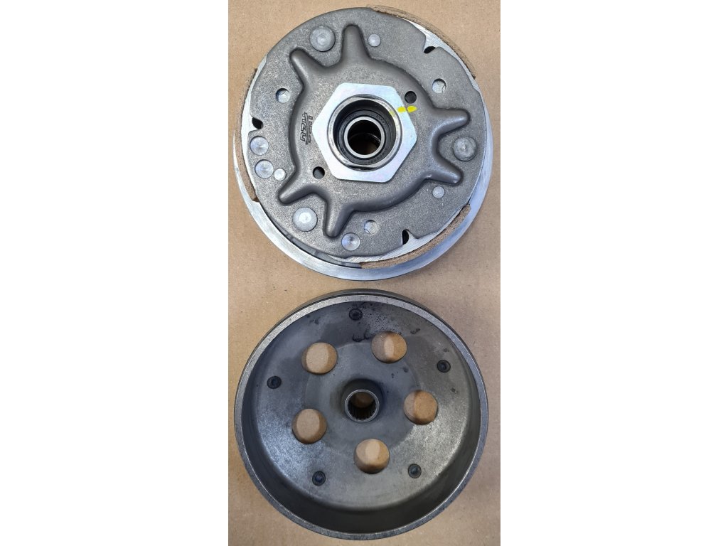 Náhradní sada zadní řemenice se spojkou a spojkovým zvonem, je vhodná pro skútry Maxon Discover 300, Yuki Explorer 250 a další skútry z továrny Taro. Jedná se o originální výrobu od firmy Taro.