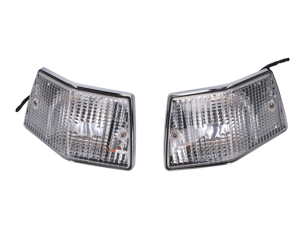 Kompletní sada bílých blinkrů, vhodná pro Vespa PX 125-200 a Vespa T5. Dodáváno bez žárovek.