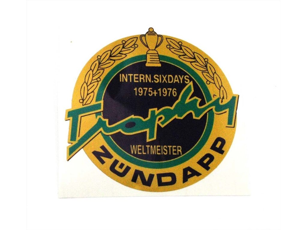 Přenášecí samolepka na nádrž "Sixdays Trophy Zündapp Weltmeister 1975 + 1976".