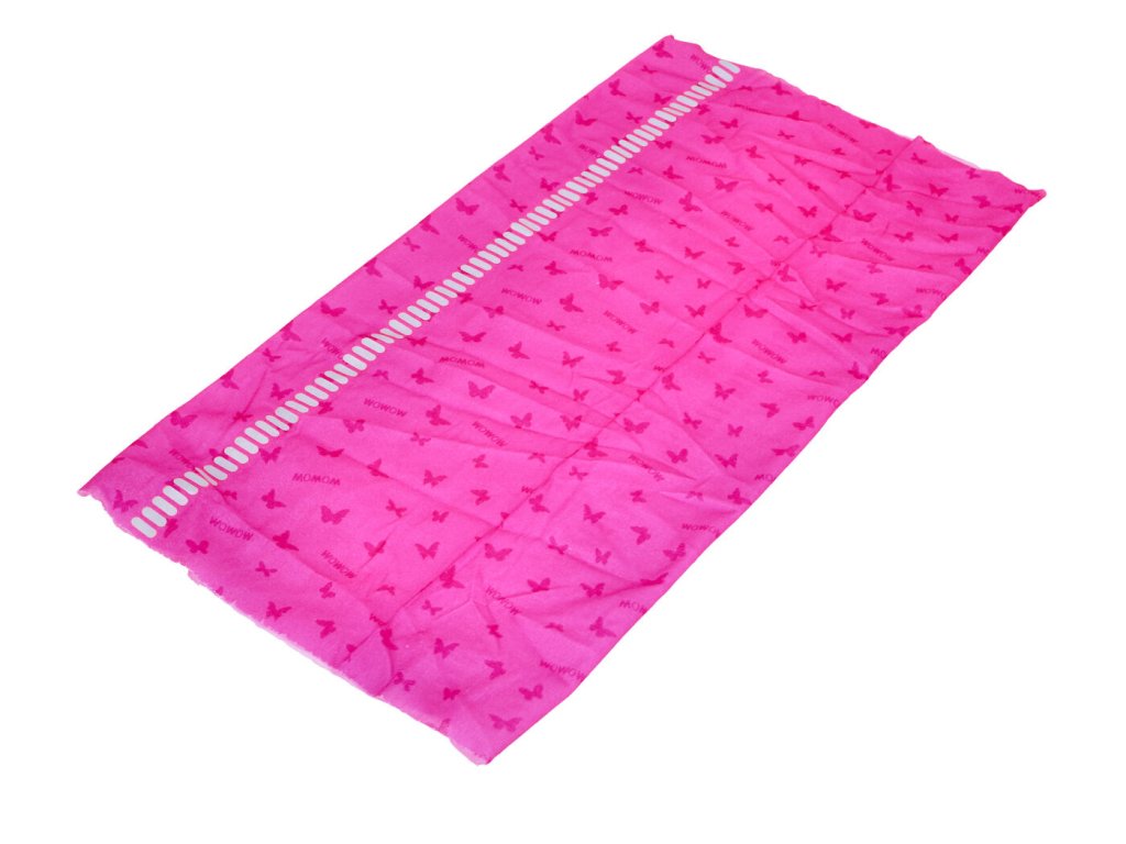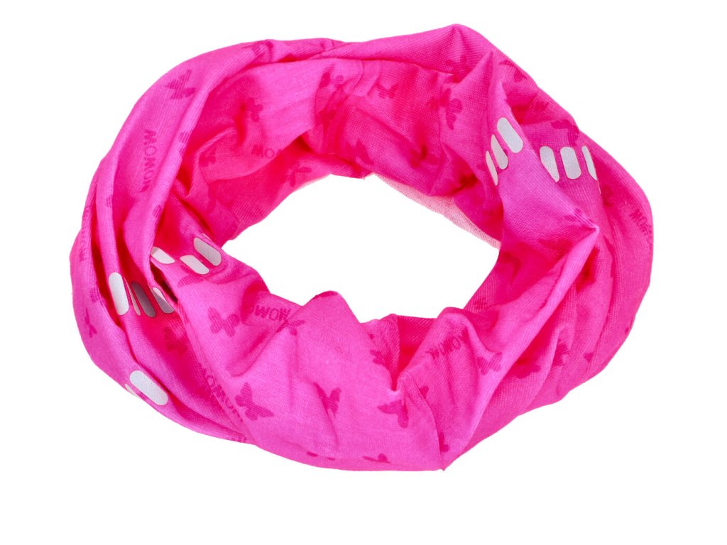 Růžový tube nákrčník s reflexními prvky pro větší bezpečnost.