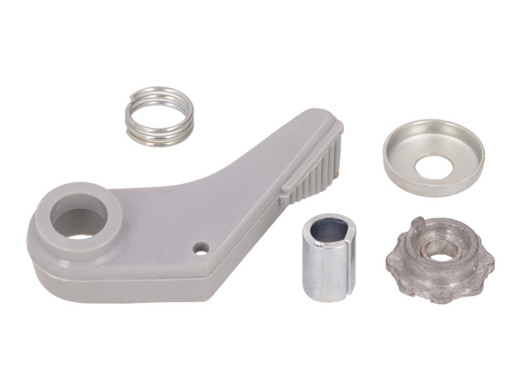 Šedá dekompresní páčka (plast) včetně montážní sady s pružinou, čepem a pojistnými prvky, vhodná pro Solex 2200, 3300 a 3800.
