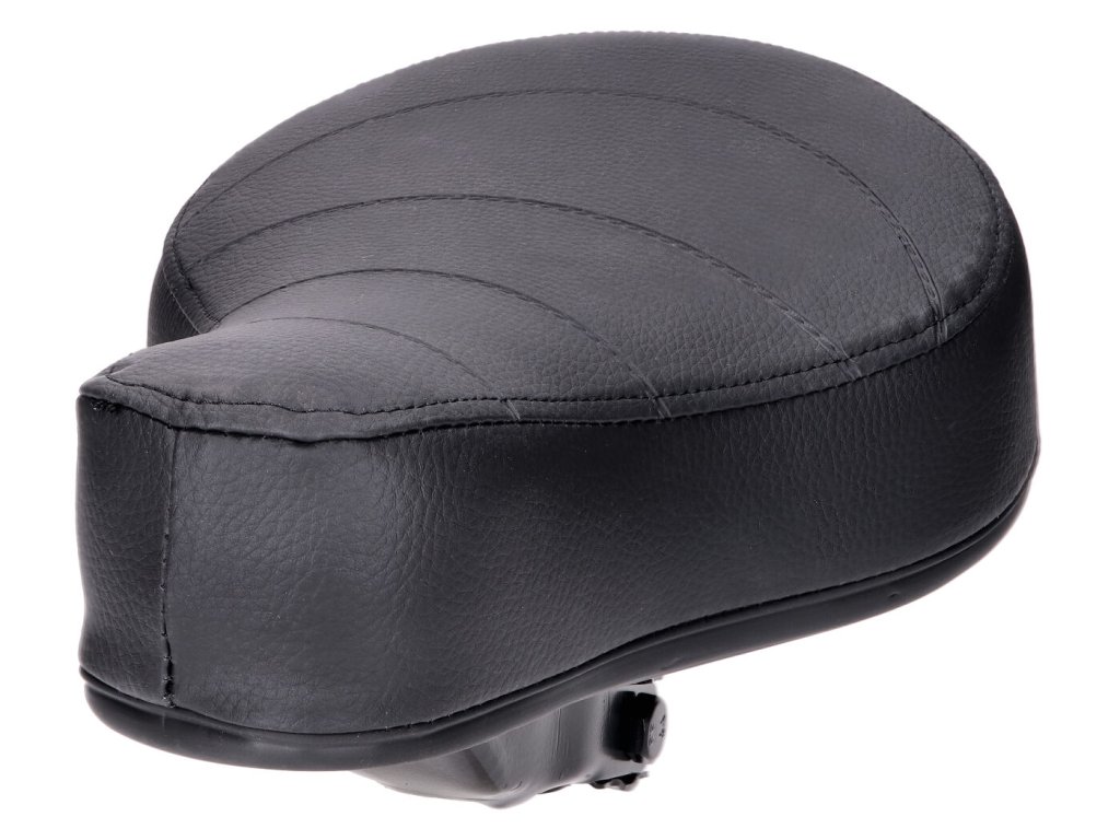 Sedlo / sedák v OEM kvalitě z prošívané černé koženky, odpružené, s 22 mm objímkou sedlové trubky a vzadu s natištěným nápisem Puch, vhodné pro různé Puch-Mofas.