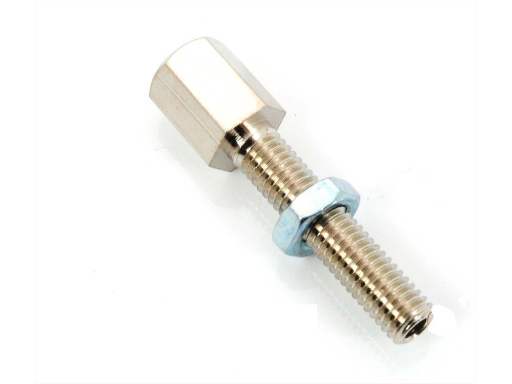 Šestihranný seřizovací šroub bowdenu, univerzálně vhodný pro mnoho Mofa, Moped, Mokick, malé motocykly a motocykly. Závit M5 × 22 mm, vedení bowdenu 9 mm hluboké a průměr 7 mm, otvor 2,5 mm.