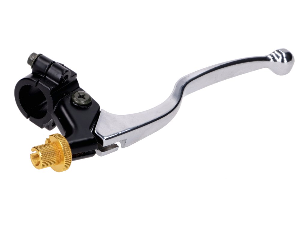 | Univerzální spojková páčka s objímkou pro levou stranu. Včetně seřizovače lanka. Mimo jiné vhodná pro motocykly a mopedy 50–125 ccm s řídítky 22 mm. | |