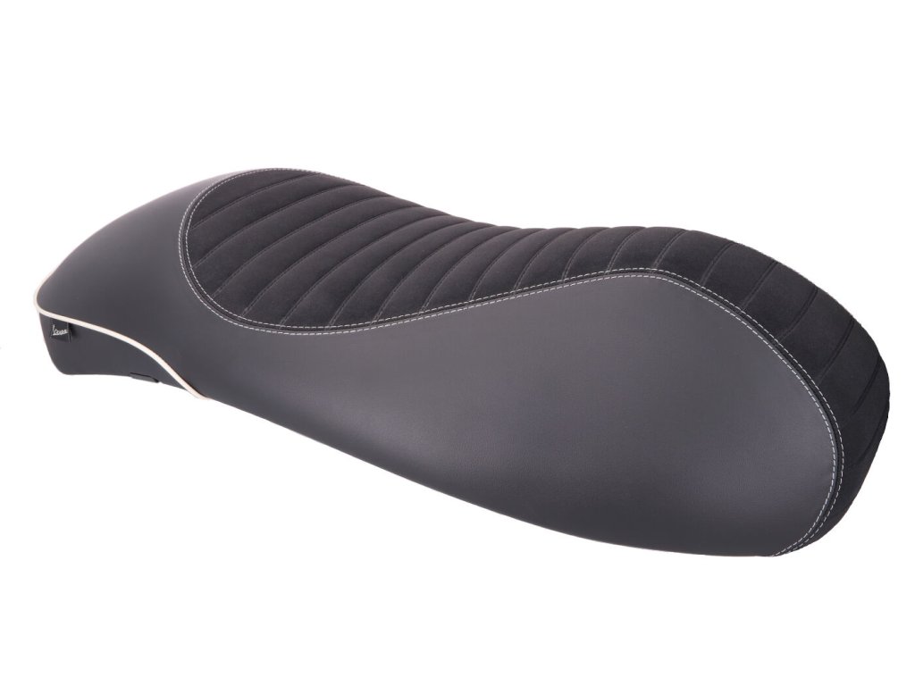 Sportovní sedlo Vespa nabízí vynikající jízdní pozici v kombinaci s optimálním držením. Sedací plocha je vyrobena z hrubé koženky a je prošívaná. Bílé švy poskytují skvělý kontrast a podtrhují ergonomický design. Díky tomu toto sedlo výtečně ladí s klasicky moderním tvarem karoserie Vespa GTS.