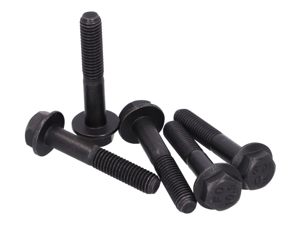 Kompletní sada černých šroubů pro upevnění bočního krytu pro Puch Maxi S Mofas a mopedy. Šrouby mají černou plastovou hlavu a pevné spojení s čepem.