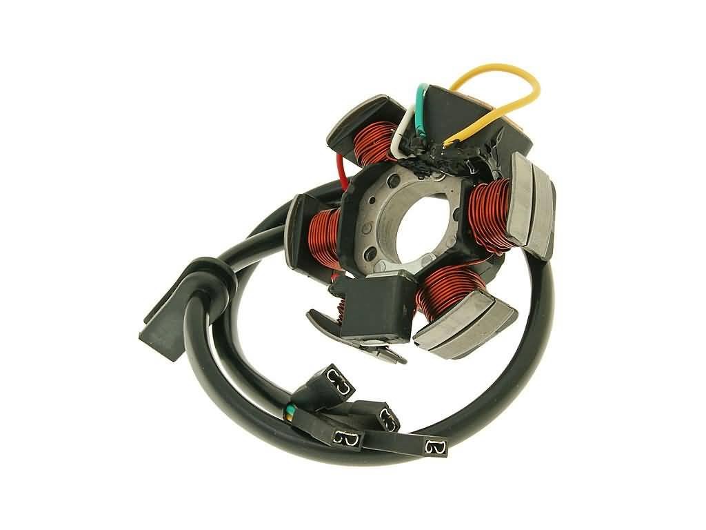 Náhradní stator zapalování 60W, je vhodný pro motory Derbi D50B0 s elektrickým startérem. V sadě je stator s konektorem a snímač.Doplňkové parametry