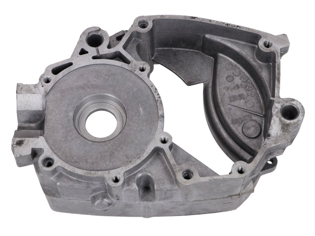 Střední díl skříně motoru pro Kreidler MF Mofa je centrální součást motorového systému, speciálně navržená pro ležatý jednoválcový dvoutaktní motor se zdvihovým objemem 49 cm³. Zajišťuje stabilní montáž a ochranu vnitřních částí motoru, jako jsou klikový hřídel, ložiska a těsnění. Skříň je vyrobena z odolného materiálu, aby odolala zatížení při provozu a umožnila optimální chlazení proudícím vzduchem. Je přesně přizpůsobena pro Kreidler MF Mofa, aby zajistila bezvadnou funkci motoru s výkonem 1,5 PS při 3 750 ot/min. Svou konstrukcí významně přispívá ke klidnému chodu a dlouhé životnosti 2stupňového automatického motoru.