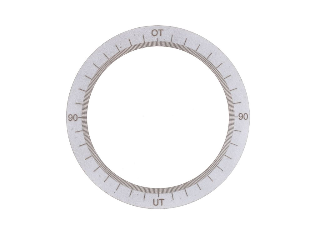 Pomocí nerezového stupňového kotouče lze určit sací řídicí úhly klikového hřídele a sacího okna. Lze tak odečíst i časování válce.