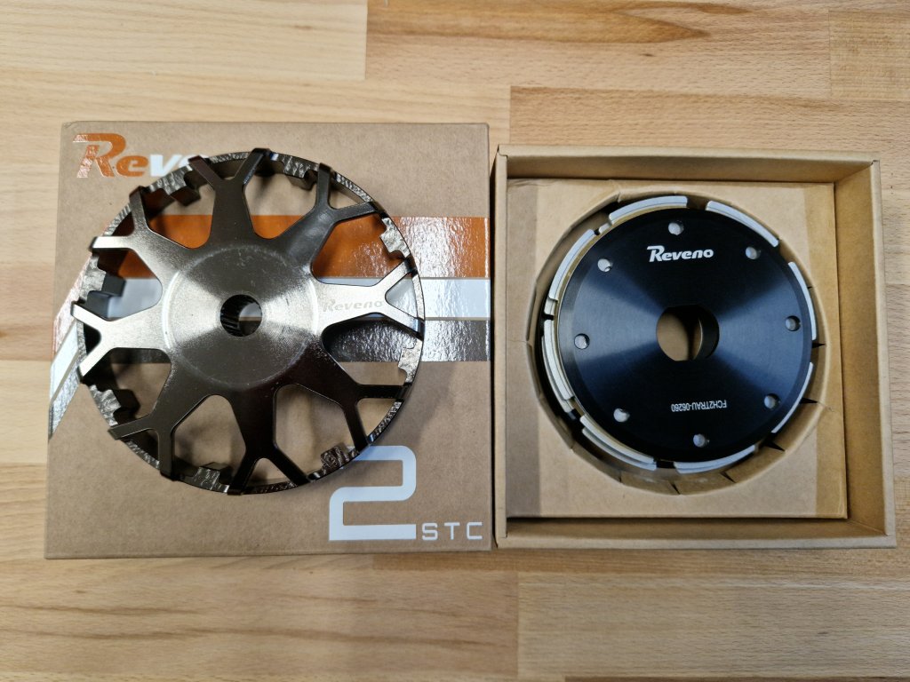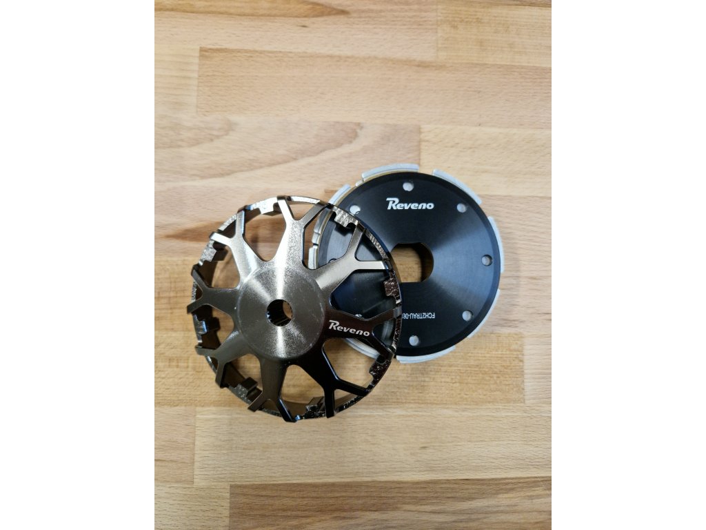 Špičková suchá spojka od značky Reveno, je něco naprosto revolučního a posouvá tuning skútrových spojek na vyšší úroveň! Opravdu tato spojka je "Game Changer" Jedná se o suchou lamelovou spojku, která je výrazně lehčí než Vaše sériová spojka, spojka má lepší záběr a lehce zvýšší výkon. Nemluvě o tom, že tato spojka je opravdu nádherná na pohled!