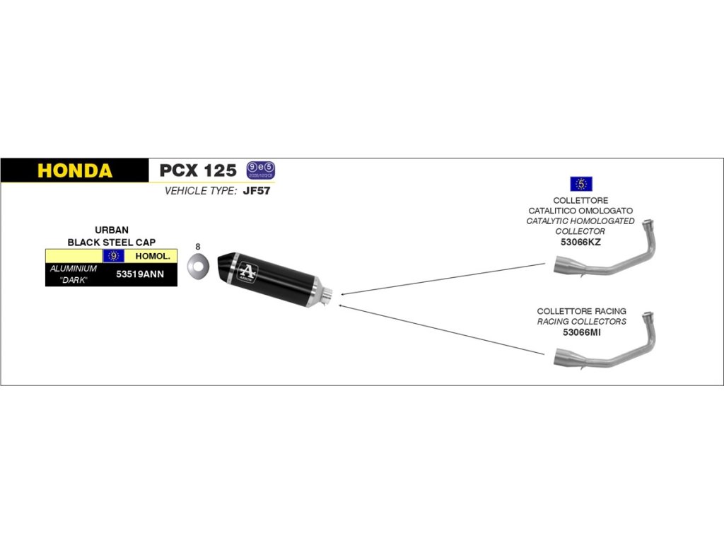 Vysoce kvalitní svod výfuku ARROW bez katalyzátoru je nutnou součástí pro koncovku výfuku 53519ANN. Svod je vhodný na skútr Honda PCX 125 a 150 od roku 2012 až do roku 2017. Tento svod je bez homologace.