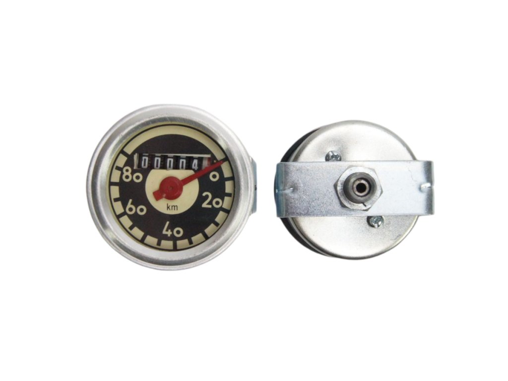 Tachometr 80km/h JAWA 50 - 05, 20, 21, 23 černo - žlutý ciferník Alu rámeček