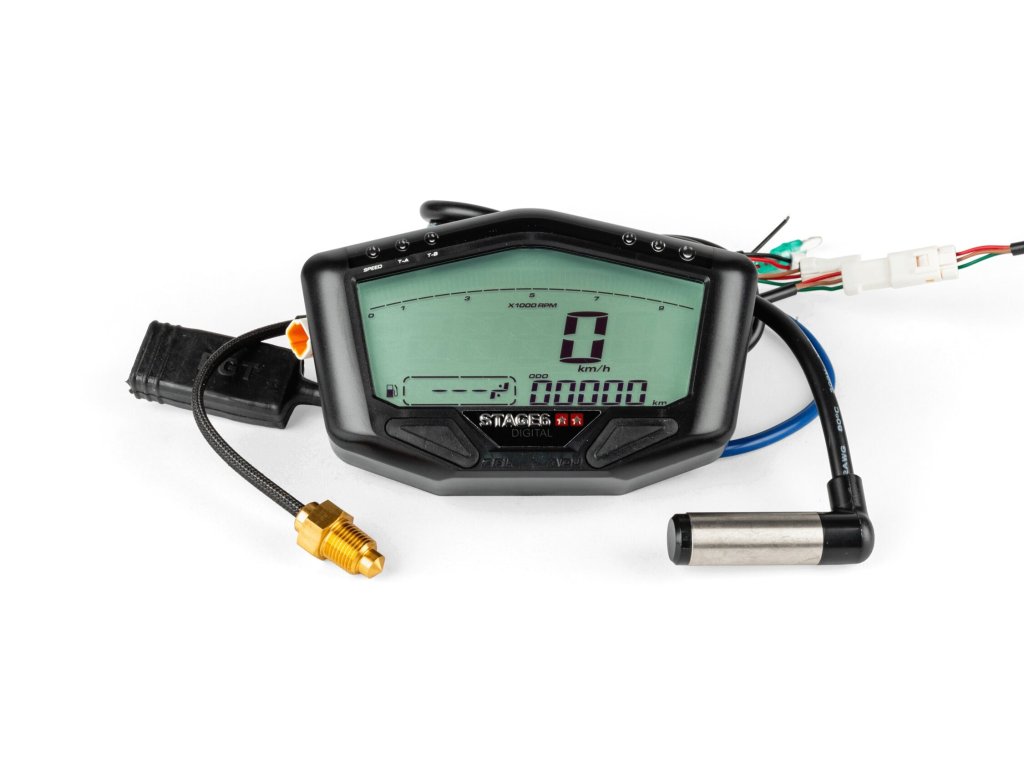 Součástí je PT-1/8 teplotní čidlo pro měření teploty vody. Pro Piaggio a Peugeot (skútry i řadičky) jsou k dispozici náhradní senzory M10 × 1,0 a M14 × 1,25. Upozornění: EGT senzor, prodlužovací kabel EGT a hadicová spona pro EGT sondu (svod) se objednávají zvlášť.