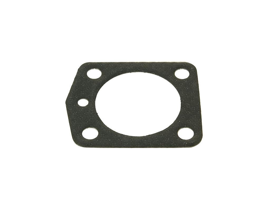 Zesílené ploché těsnění kolena výfuku, je vhodné pro mopedy Puch Maxi, MS, VS, DS a VZ. Rozteč děr: 44,5 mm, vnitřní průměr: 27 mm, šířka: 56 mm, výška: 37 mm, tloušťka: 2,5 mm.