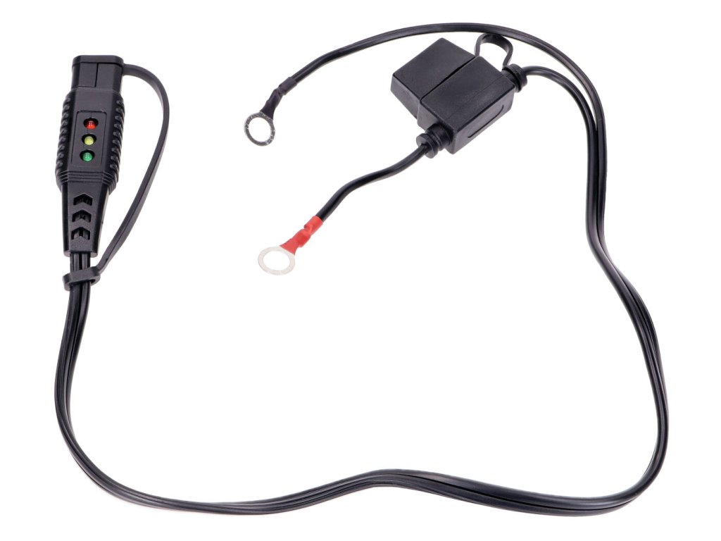 Tento tester baterie je kompatibilní se všemi chytrými nabíječkami Fulbat a ukazuje stav nabití 12V baterií. Fulbat Fulconnect Indicator se používá ke kontrole baterie a má zároveň konektor s nabíjecím připojením, to se hodí, pokud je baterie špatně přístupná. Technické specifikace: typ baterií: 12V (GEL, AGM, MF, DRY a WET), konektory: M8 s očkem, nabíjecí konektor: SAE s voděodolnou krytkou, pojistka: 10A, délka kabelu: 500 mm.
