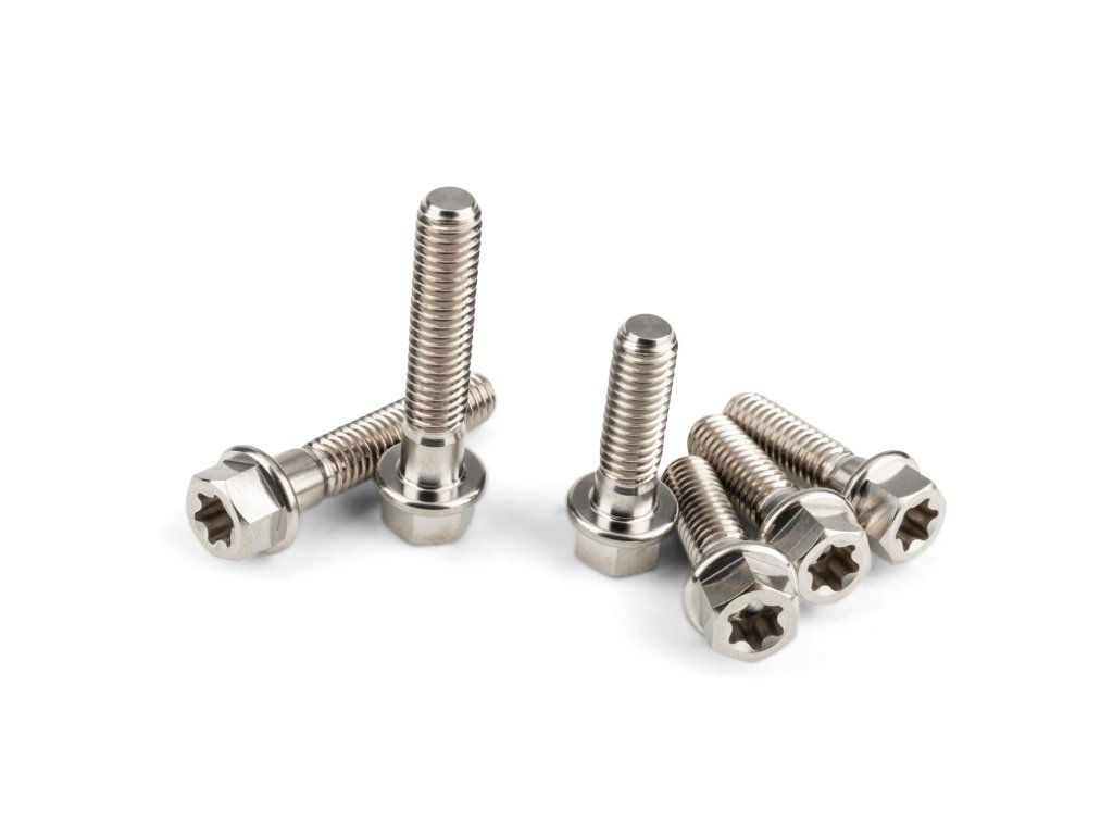 Titánové šrouby Stage6 jsou lehké, odolné a nekorodují. Šestihranná hlava s Torx vložkou zajišťuje přesnou montáž. Vhodné pro různé použití.