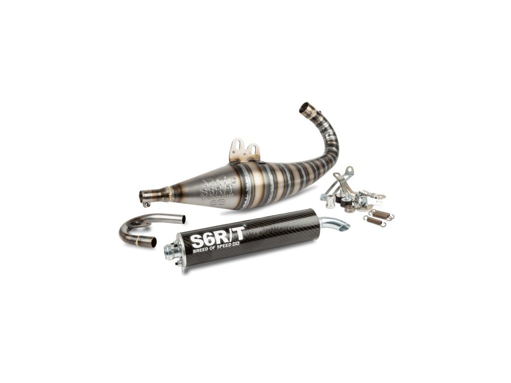 Ručně svařovaný z více kuželů, přesvědčí výkonem i vzhledem. Pružně uložený karbonový koncový tlumič s CNC koncovkami, čisté svary a silentblokové uložení držáku zvyšují technickou i vizuální hodnotu. Tvar a objem jsou sladěny s válci Stage6 R/T 70 ccm, společně poskytují výrazné zvýšení výkonu.