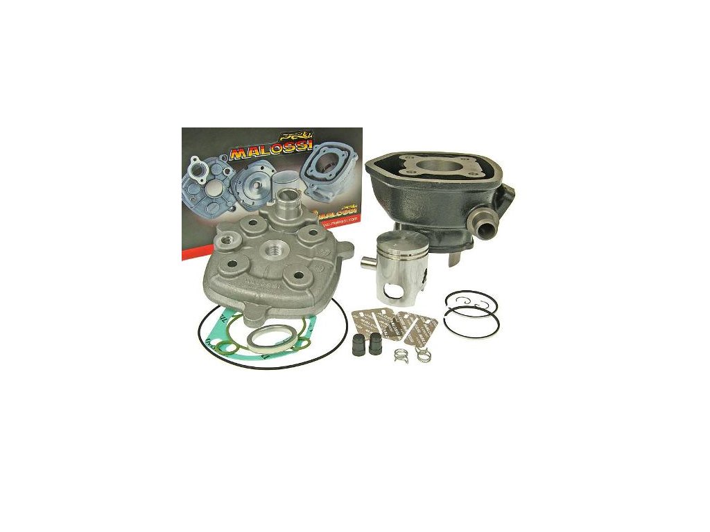 Válec Malossi Sport 70cc, Minarelli LC - Základní sportovní válec z litiny od Malossi pro každodenní použítí. Výkon není tak závratný, ale za to cena potěší. K válci doporučujeme také nějaký základní sportovní výfuk jako je třeba Yasuni Z nebo Laser Xpro V sadě najdete kompletní válec, píst, kroužky, pístní čep, sadu těsnění. U litinových kitů je hlavní výhodou delší životnost a hlavně zátah odspodu. Výkon by se měl pohybovat okolo 8 až 10ti koní za předpokladu správného nastavení a použití dalších komponentů.Doplňkové parametry