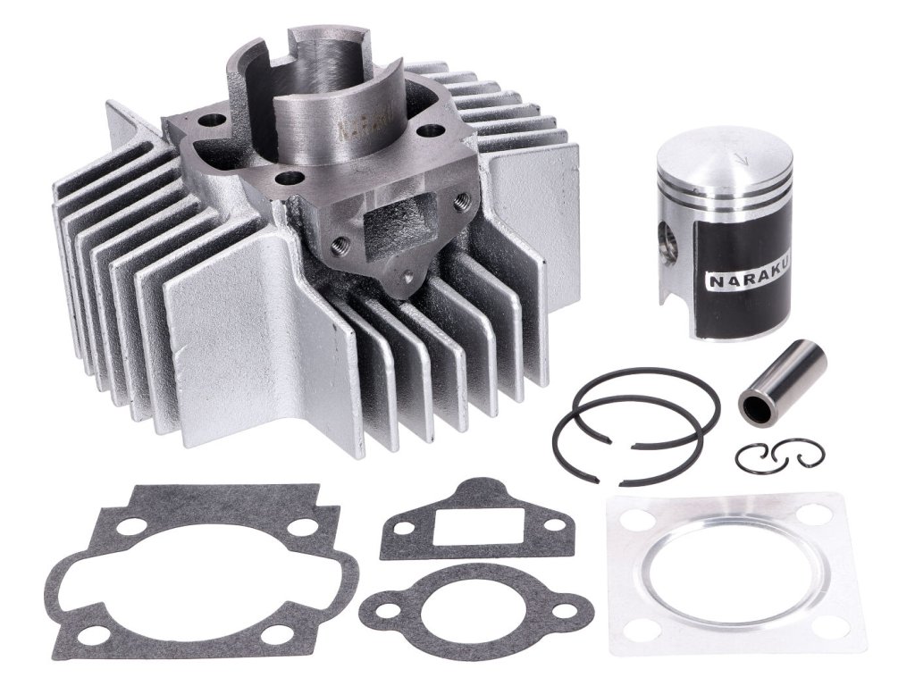 Náhradní litinový válec Naraku 50ccm s vrtáním 38mm, je vhodný pro stroje Puch Maxi. Válec od firmy Naraku je jedna z nejlevnějších variant. Píst je speciálně potažený proti zadření při záběhu motoru. V sadě je obsažen válec, píst s kroužky, pístní čep, pojistné kroužky a potřebné těsnění. Válec má delší chladicí žebra pro lepší odvod tepla.Doplňkové parametry