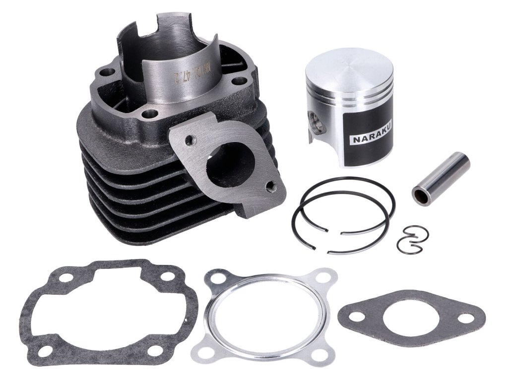 Sportovní válec V.2 Naraku 70ccm, s pístním čepem 12mm, je vhodný pro motory 1E40QMB (E2). Válec od firmy Naraku je jedna z nejlevnějších variant. Píst je speciálně potažený proti zadření při záběhu motoru. V sadě je obsažen válec, píst s kroužky, pístní čep, pojistné kroužky a potřebné těsnění. Při montáži se ujistěte, že značka „T“ nebo „J“ na pístním kroužku směřuje nahoru. Válec lze použít s originální hlavou. Karburátor může zůstat originální, ale je potřeba nasadit větší trysku.Doplňkové parametry