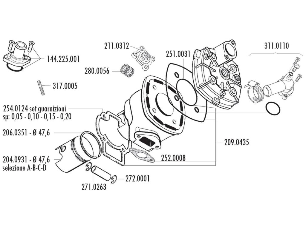 Kompletní sada špičkového hliníkového válce Polini Racing Evolution 70ccm s vrtáním 47,6mm, zdvihem 39,3mm a pístním čepem 12mm. Tento válec je určený pro motory Piaggio LC. Válec Vám zaručí maximální zvýšení výkonu. Výrobce doporučuje namontovat větší karburátor a závodní výfuk.Doplňkové parametry