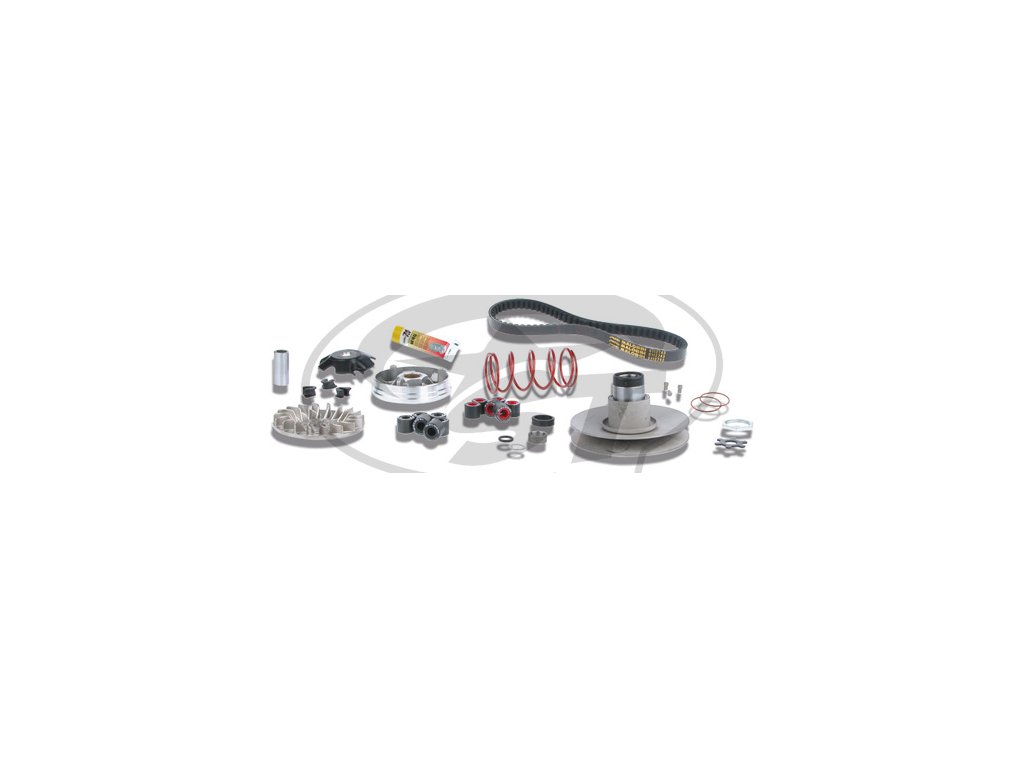 Variátor kit Malossi Overrange 2005, Minarelli - Nový Overrange kit ze serie Malossi Hyper Racing (MHR) k dostání od srpna 2005. Celý kit obsahuje kompletní zadní řemenici (pohyblivá půlka a pevná půlka), kontrastní pružinu, MHR variátor, vario větrák a prodloužený řemen. Díky zvětšenému průměru zadní řemenice variátor pracuje ve větším rozsahu a lépe udrží skútr v optimálních otáčkách. Hlavní rozdíl od starého Overrange kitu je nový variátor s válečky o rozměru 19x15,5mm, díky kterým je vyladění výkonu ještě jednodušší. Kit obsahuje dvoje válečky - 3,5g a 3,8g k snadnému doladění. Celý kit je určen k použítí spojky s průměrem 107mm. Pro montáž tohoto kitu je nutné vyndat volnoběžku a věnec startéru. Po montáži již není možné startovat skútr elektrickým startérem.Doplňkové parametry