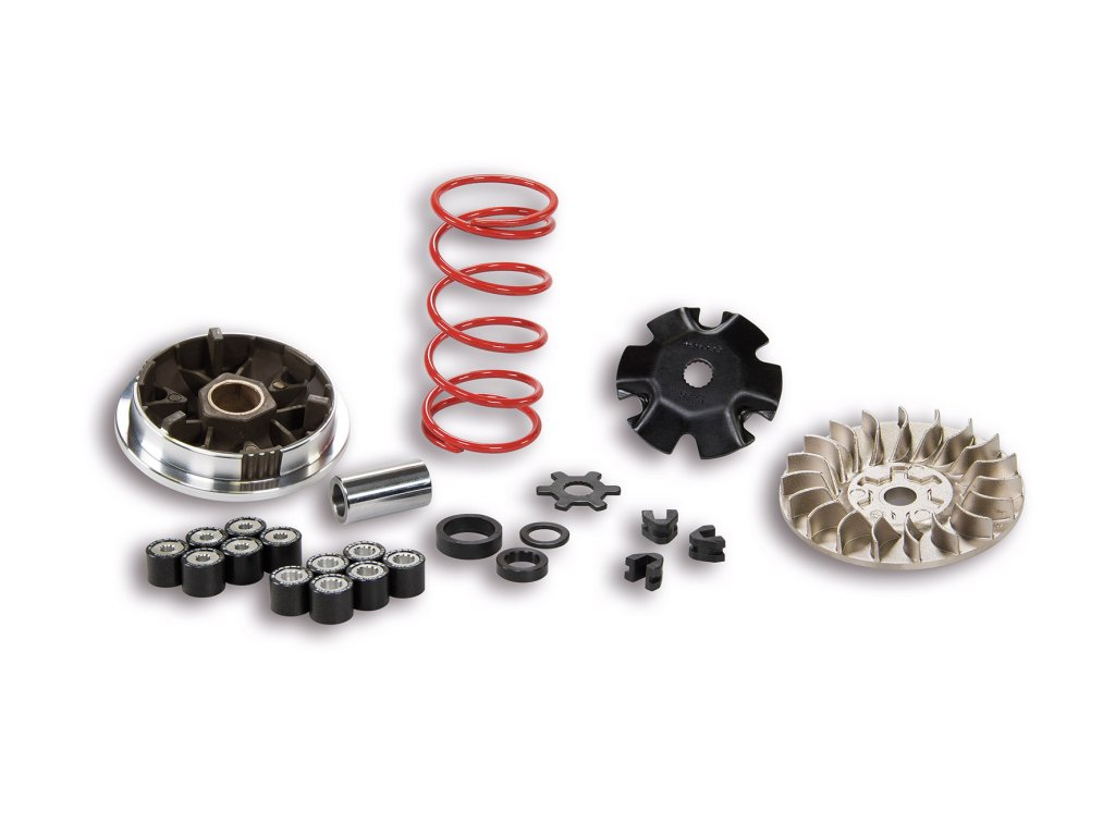 Sada obsahuje variátor, dvě sady válečků (16x13 3,9 g a 4,7 g), červenou kontrastní pružinu pro lepší sladění charakteristiky výkonu a polořemenici. Variátor je připraven k přímé montáži bez úprav okolních dílů.