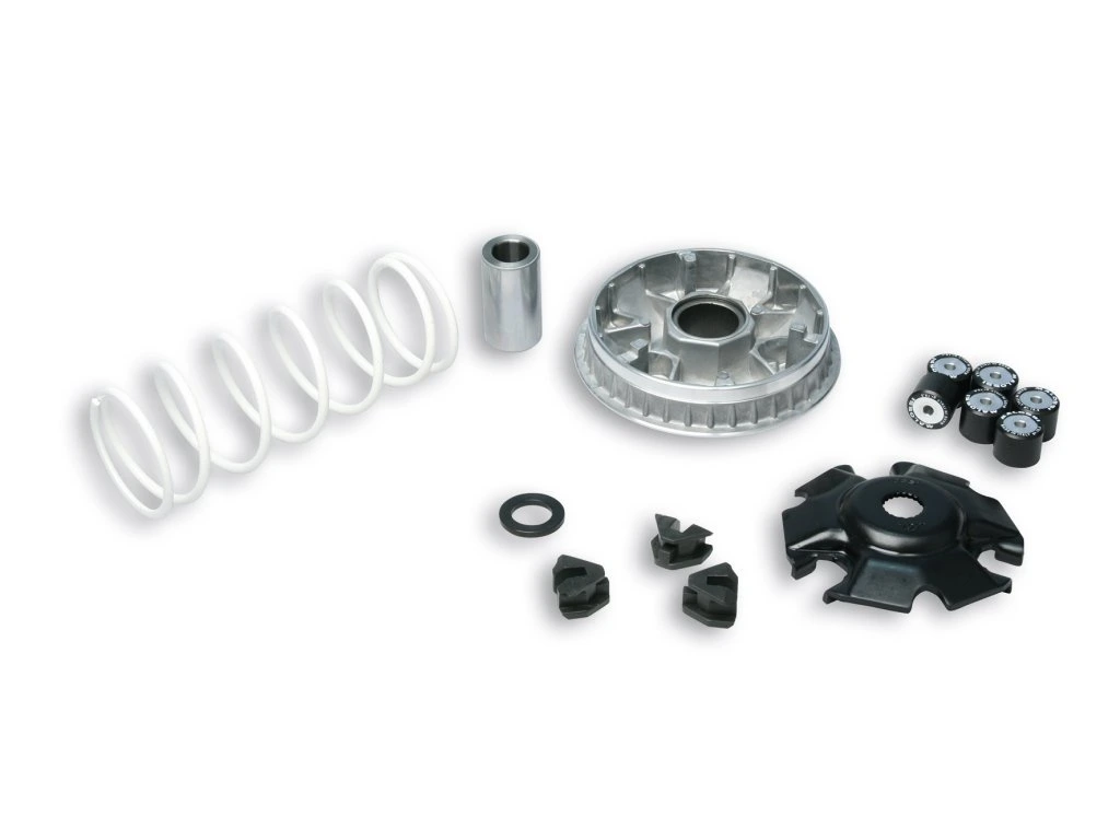 Sada obsahuje variátor, sadu válečků 20x17 10,5g a bílou kontrastní pružinu pro optimální sladění výkonu. Variátor je vyroben s důrazem na vysokou kvalitu, odolnost a dlouhou životnost, typickou pro produkty Malossi.