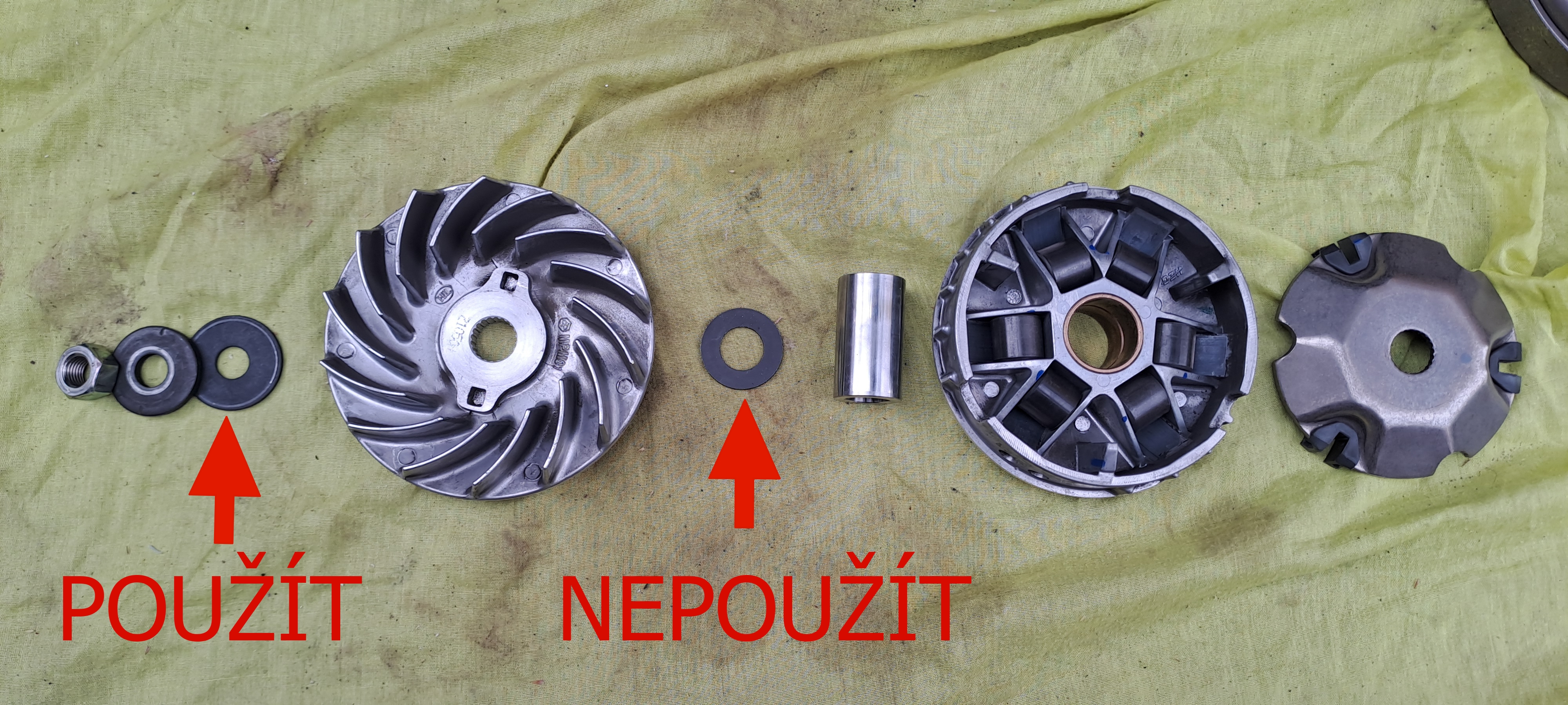 Při montáži tohoto variátoru se nepužívá originální podložka variátoru.