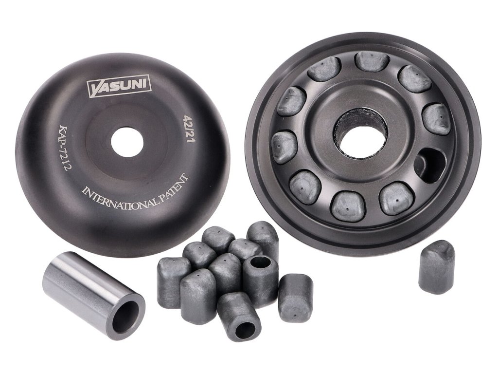 Yasuni Axial variátor vhodný pro vozidla s motory Minarelli, např. B. Yamaha Aerox 50, MBK Booster 50 a Malaguti F15 Firefox 50 AC / LC. Variátor vyvinula a patentovala společnost Yasuni. S tímto variátorem se výkon motoru přenáší přímo na kolo, čímž se dosahuje nejlepšího možného výkonu. Zřetelné rozdíly jsou také v konstrukci a použitých materiálech: například CNC frézované hliníkové pouzdro řady 6000 s keramickým povlakem. Exkluzivní a patentované středové pouzdro výrazně snižuje tření. Válečky jsou vyrobeny ze špičkového plastu s molybdenem.