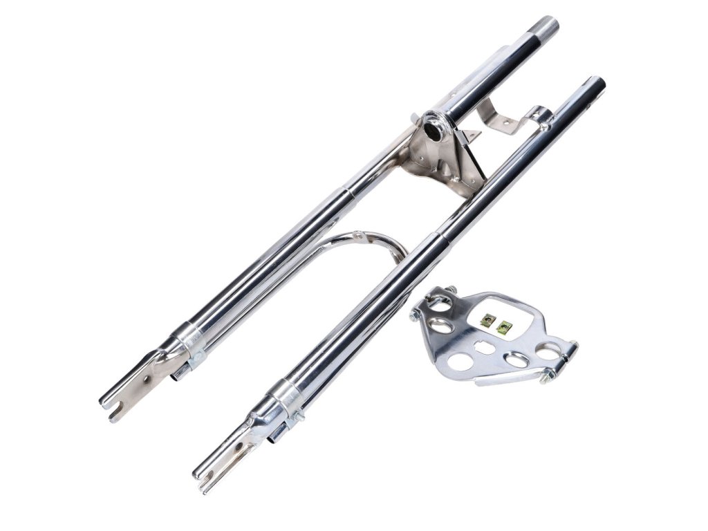 Vidlice 585 mm chromovaná s držákem blatníku pro Peugeot 103 MVL